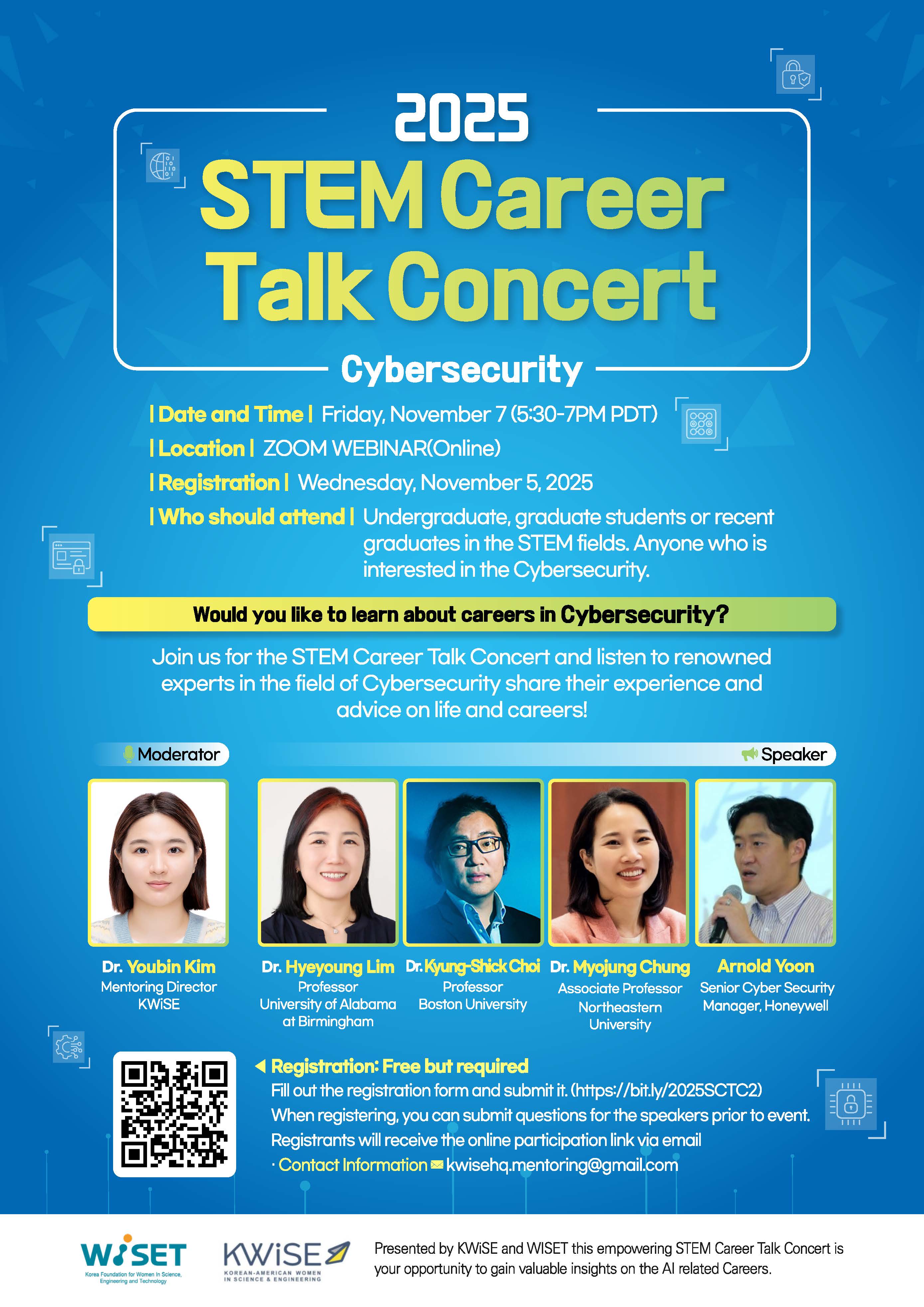 KWISE-WISET STEM Career Talk Concert – Neuroscience October 11, 2024 Guest Speakers: Dr. Hee-Yong Kim, Dr. […]STEM Career Talk Concert – Climate Science and Technology